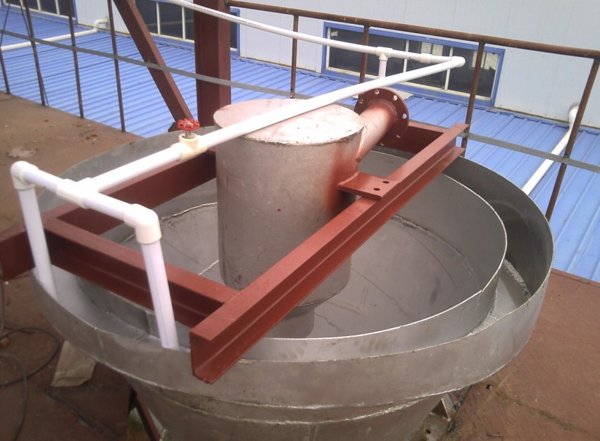 砂與水的混合物通過一給礦槽由上部給入,在重力作用下在筒體內(nèi)向下運(yùn)動(dòng),在筒體下部有一多空噴水板,給入上升的水流與下降的固體顆粒相互作用逐漸形成一個(gè)流態(tài)化床層,不同粒徑的顆粒將以該容積濃度下的受阻降速度向下降落或向上運(yùn)動(dòng),借助于電子壓力傳感器可以測(cè)量硫化床層的壓力狀況并自動(dòng)調(diào)節(jié)排礦閥門的開度從而保證按需要的分離**的分級(jí)。